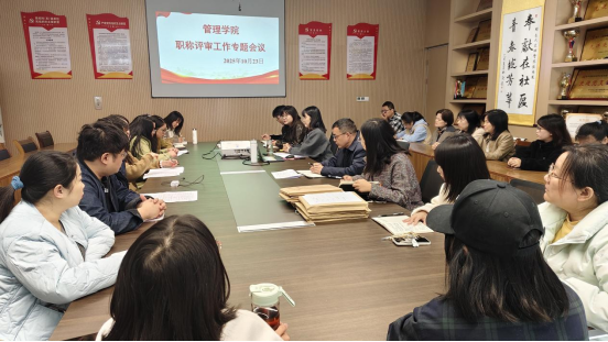 本网讯(通讯员 张勤)10月23日下午,管理学院在图书馆532召开2025年职称评审工作专题会议。会议由管理学院院长姚毅主持,全体教职工参加。