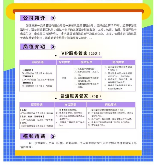 浙江林家一品牌管理有限公司作为一家起源于浙江温岭、总部设于杭州,拥有近二十年发展历史的知名餐饮品牌管理集团,业务遍布北京、上海、杭州、台州、无锡等多座城市,旗下多家门店正积极冲击米其林、黑珍珠等国际国内权威餐饮评选荣誉,企业发展势头强劲,品牌影响力广泛。
