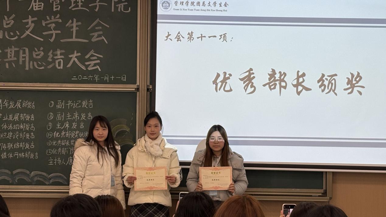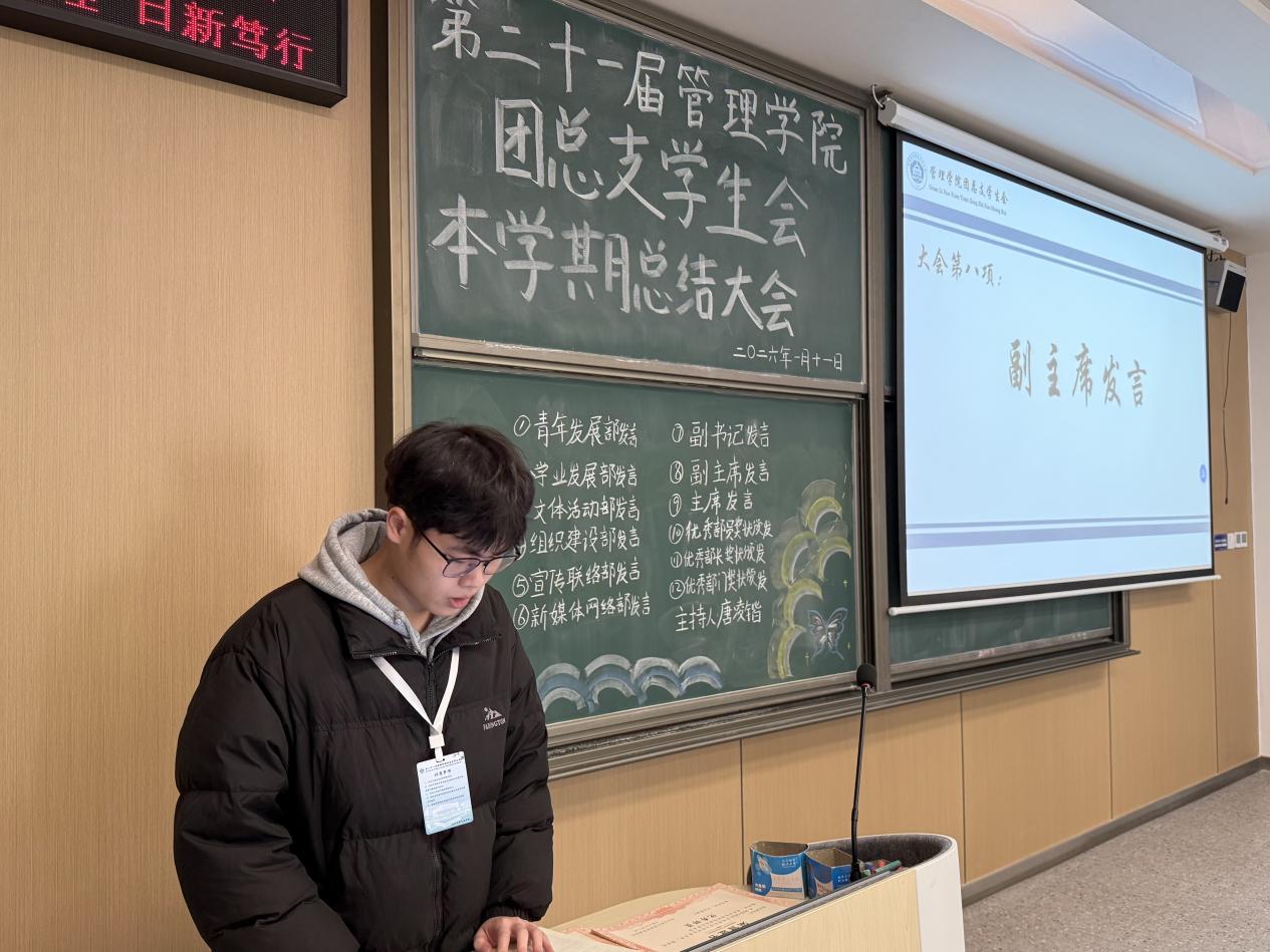 此次总结大会,不仅为管理学院团总支学生会第一学期的工作画上了圆满句号,更为新学期工作的有序开展奠定了坚实基础。新的一年,管理学院团总支学生会全体成员将以此次大会为契机,怀揣初心再出发,以更饱满的热情、更务实的作风、更创新的思路投身学生工作,在服务同学、助力学院发展的道路上步履不停,用实干与担当书写青春新篇章。