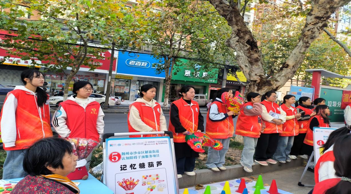 本网讯(通讯员 邓志玲)为提升社区老人认知健康意识,共建记忆友好型社区,2025年11月27日,管理学院志愿服务总队走进荆州城发康养北湖路社区养老服务中心,开展以“关注老年认知健康,共建记忆友好社区”为主题的科普游园会活动,用趣味互动为老年群体送上专属关怀。