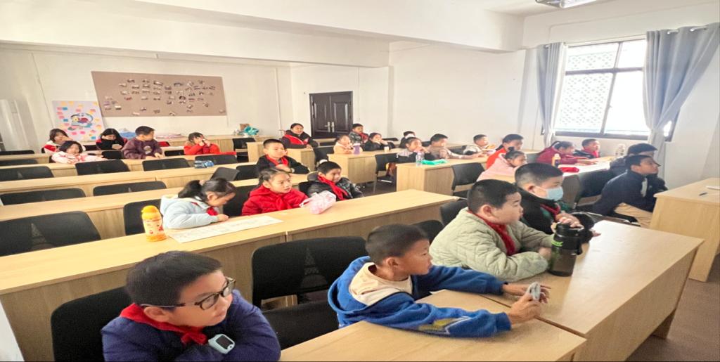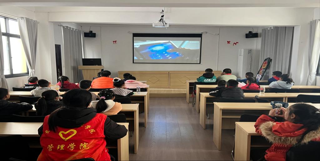本网讯(通讯员 杨文卓)2025年11月22日,管理学院青春健康科普志愿服务队再次走进解放街道朝阳社区的“周六课堂”开展活动。来自社区的30余名小朋友齐聚在此,通过观看热血电影《长空之王》与“新闻主持实践课”,度过了一个兼具“航天梦”与“表达力”的周末。