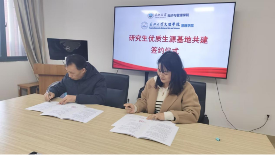 本网讯(通讯员 张勤)为加强院校合作,优化研究生生源结构,共同提升人才培养质量,11月20日下午,我院与长江大学经济与管理学院研究生优质生源基地共建签约仪式在长江大学经济与管理学院顺利举行。