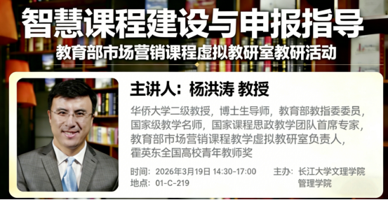主讲人简介:杨洪涛,华侨大学二级教授,博士生导师,教育部教指委委员,国家级教学名师,国家课程思政教学团队首席专家,教育部市场营销课程教学虚拟教研室负责人,霍英东全国高校青年教师奖。