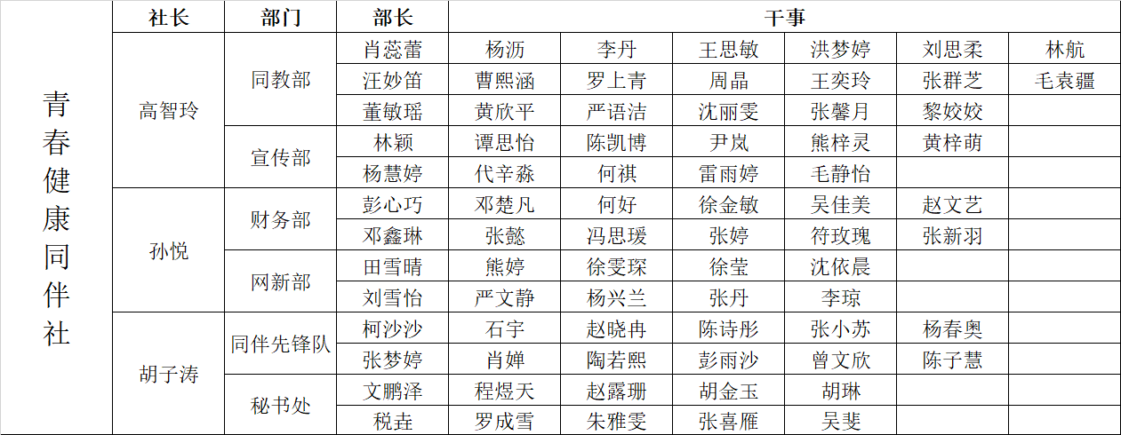 新一届干部及成员名单: