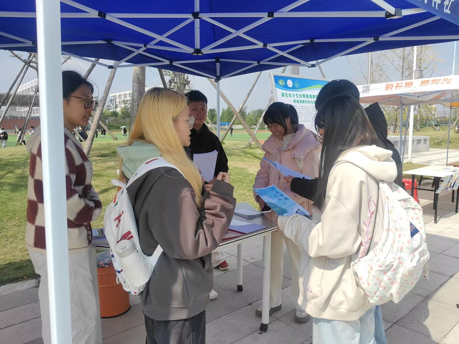 招新活动分别在城中校区和新校区设立主题展位。现场,社团骨干成员们耐心细致地为前来咨询的同学答疑解惑,阐述了同伴教育的独特魅力——“我们不是枯燥的说教,而是用同龄人易于接受的方式,分享科学的知识与理性的态度。”社团介绍的展板上展示有前期活动照片,如“防艾”主题讲座、同伴教育主持人大赛、心理健康团辅等活动。生动地呈现了社团的活力与专业,每一张照片都在说:“我们超有料,等你一起来!”