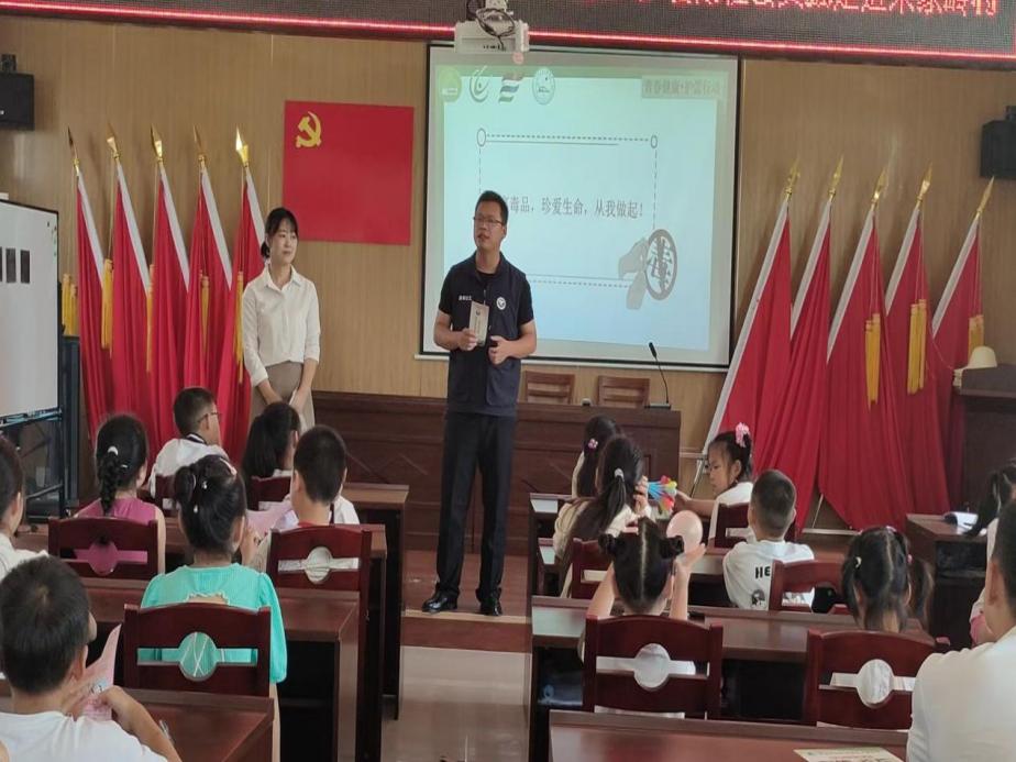 禁毒这一主题由2138acom太阳集团青春健康科普教育志愿服务队的志愿者们与八岭山禁毒队一起联合展开,首先由志愿者向小朋友们介绍毒品的种类,毒品的危害,如何拒绝和预防毒品以及用图片的形式展示毒品,让小朋友们对毒品有进一步的了解,同时也鼓励小朋友们积极提出疑问,让志愿者们现场为小朋友们解惑,在互动环节,志愿者们组织了一场禁毒宣誓,小朋友们纷纷举起自己的右手,大声喊出禁毒宣誓词,这不仅是同学们对自己的承诺,更是对社会对国家的庄严承诺,宣誓过后由禁毒民警为同学们进行禁毒知识宣讲,让小朋友感受到禁毒的严肃性以及拒绝毒品是每个公民的义务。