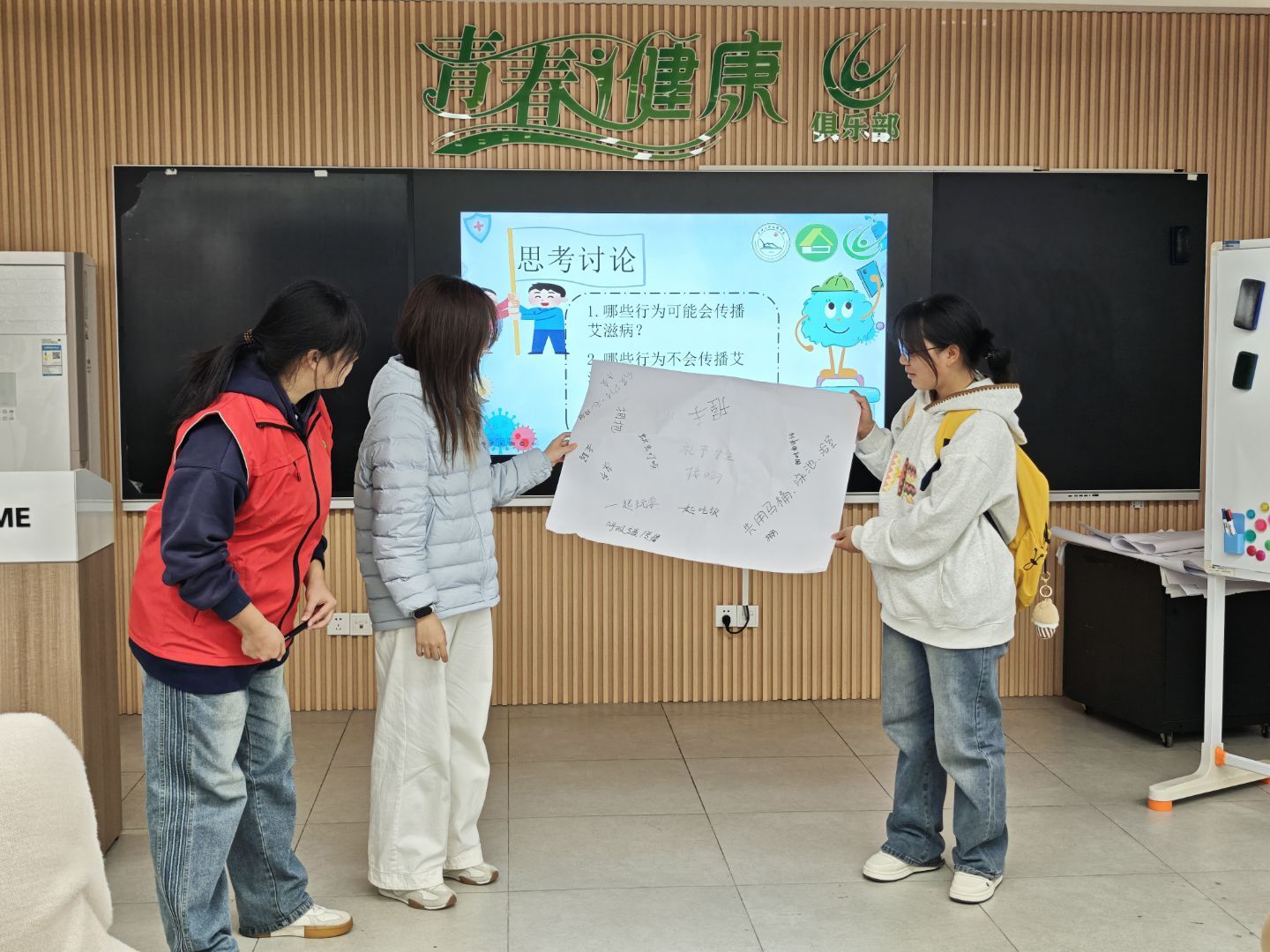 “以前总觉得艾滋病离自己很远,今天才知道日常防护的细节这么重要,比如正确认识传播途径能减少不必要的恐慌。”参与活动的2025级学生李同学说,“小组里大家聊的都是真实遇到的困惑,这种同伴分享比看课本有用多了。”另一位同学则补充:“‘反歧视’这点戳到我了,防艾不只是保护自己,也是给他人一份尊重。”