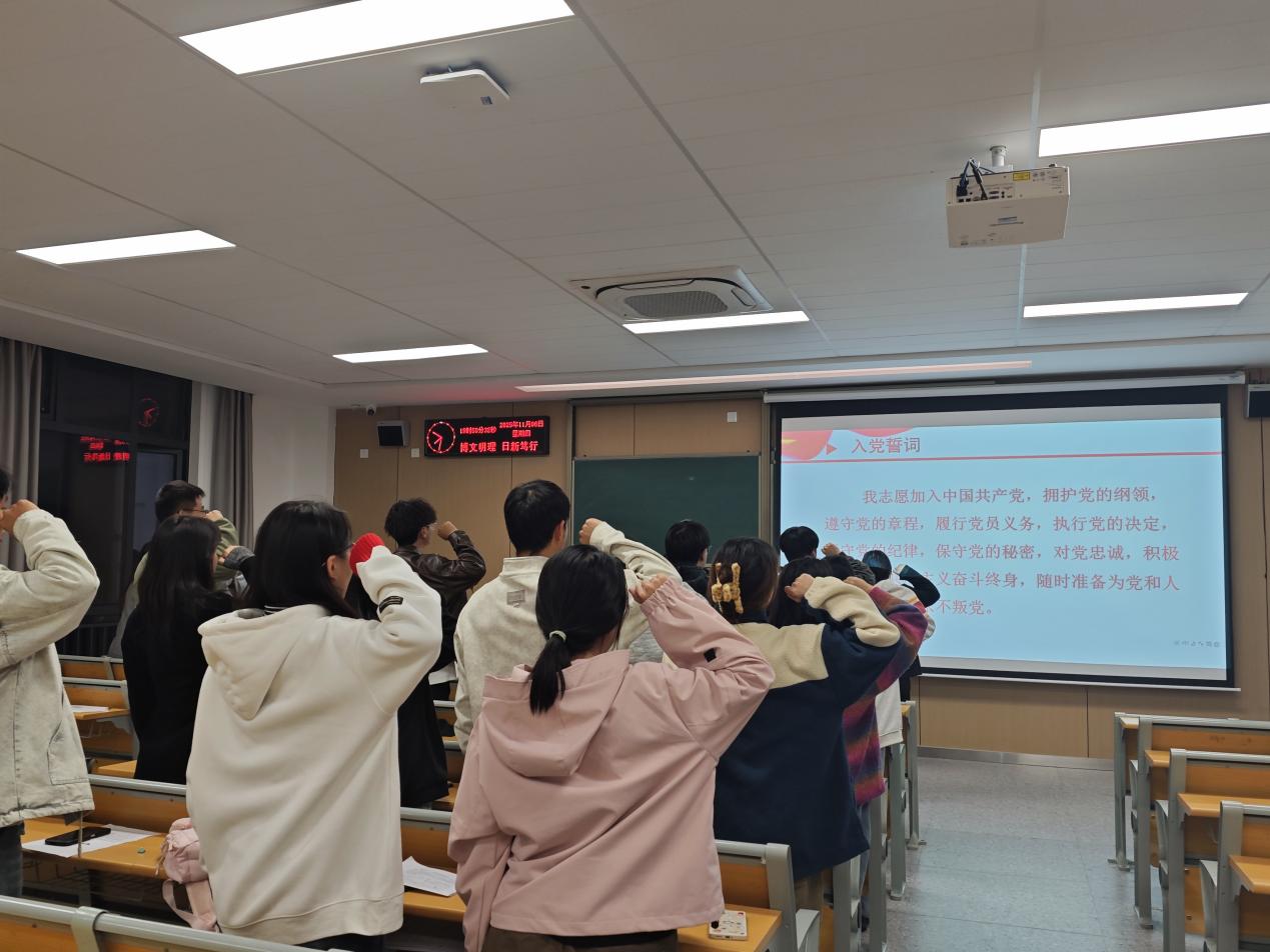 会议最后,党支部书记杨杉杉对新同志们提出三点明确要求与殷切期望:一是深化思想淬炼,持续跟进学习党的创新理论,把理论学习成果转化为坚定理想信念与行动自觉,做到学思用贯通、知信行统一,始终保持思想上的先进性;二是强化担当实干,既要在校园生活与集体事务中亮身份、作表率,带头攻坚克难、服务同学,以实际行动践行党员责任使命,也要立足学业本职精益求精,在实践锻炼中增长才干,努力成为兼具理论素养与实操能力的青年骨干;三是严守规矩品行,以党章党规校准言行边界,以优良道德涵养个人品格,做到心有所畏、言有所戒、行有所止,永葆党员清正本色。同时希望全体党员以新同志加入为契机,相互学习、共同进步,以更加饱满的热情投身各项工作,不负时代与组织重托。