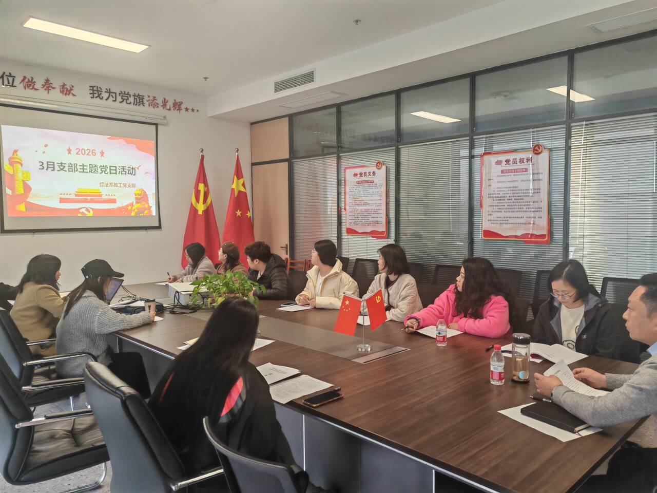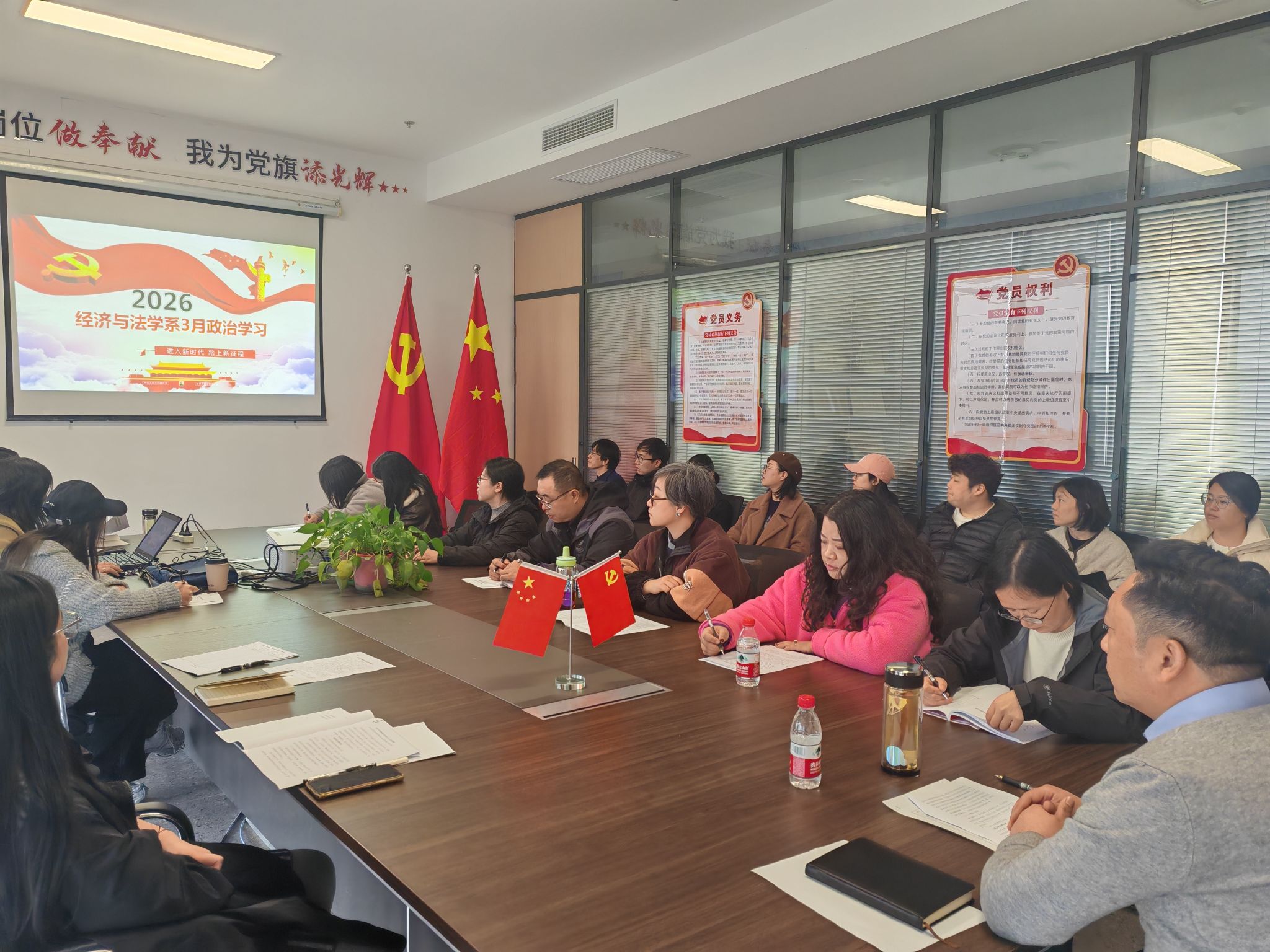 3月12日下午,经法系教工支部在系会议室开展3月政治学习和支部主题党日活动。会议由教工党支部书记陈莉主持。