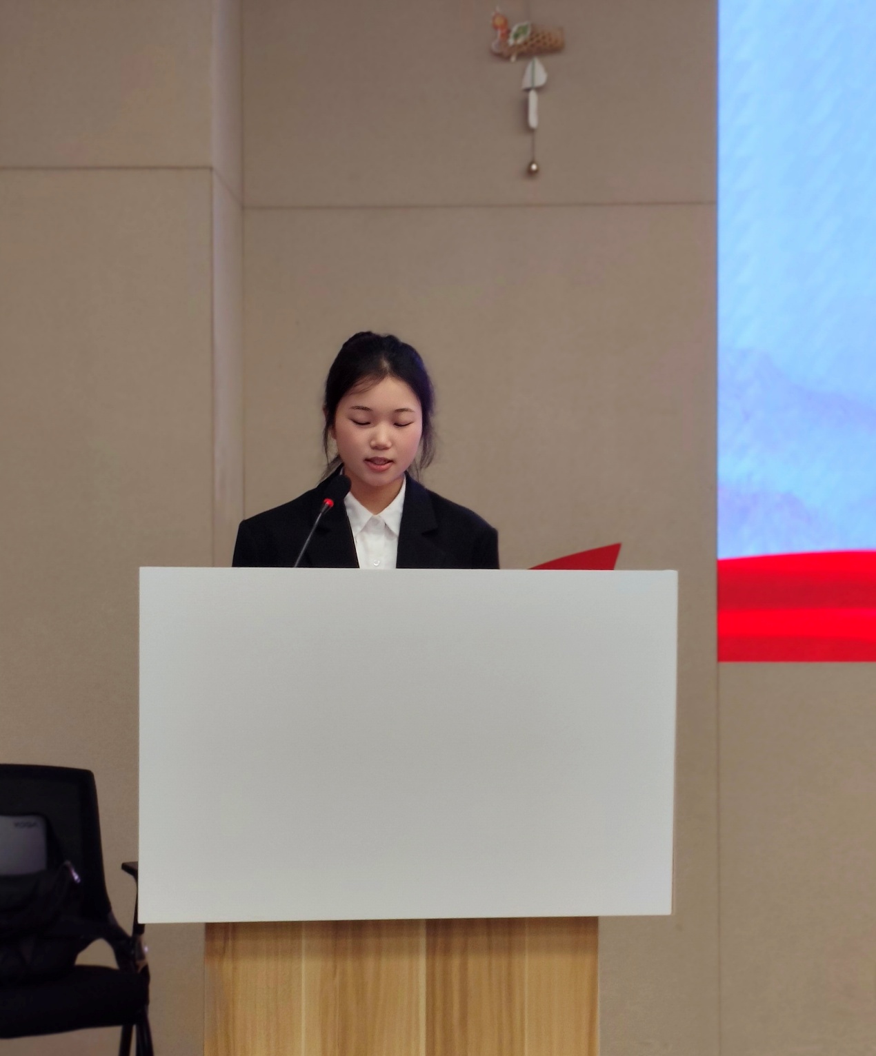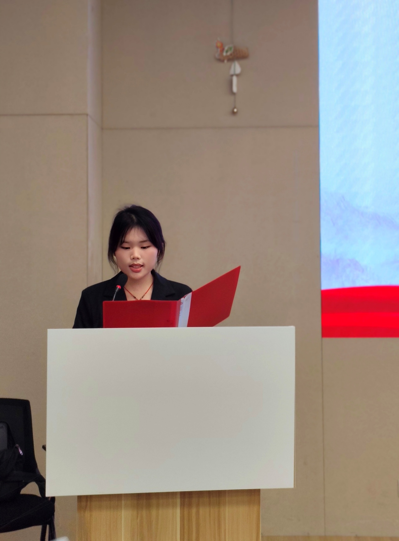 杨杉杉宣布第二十一届团总支学生会志愿者服务队成立,并充分肯定了第二十届团学组织学生干部在团学工作中展现的实干精神与突出贡献。同时,对新任职的团学成员提出三点要求:一要牢记学生身份,以勤学笃行之姿发挥表率作用;二要厚植服务情怀,主动担当同学成长的贴心人;三要锤炼过硬本领,提升工作效能与团队活力。她强调我系将为新一届团学工作提供全方位支持保障,并对团学事业发展与青年学子成长送上美好祝愿。