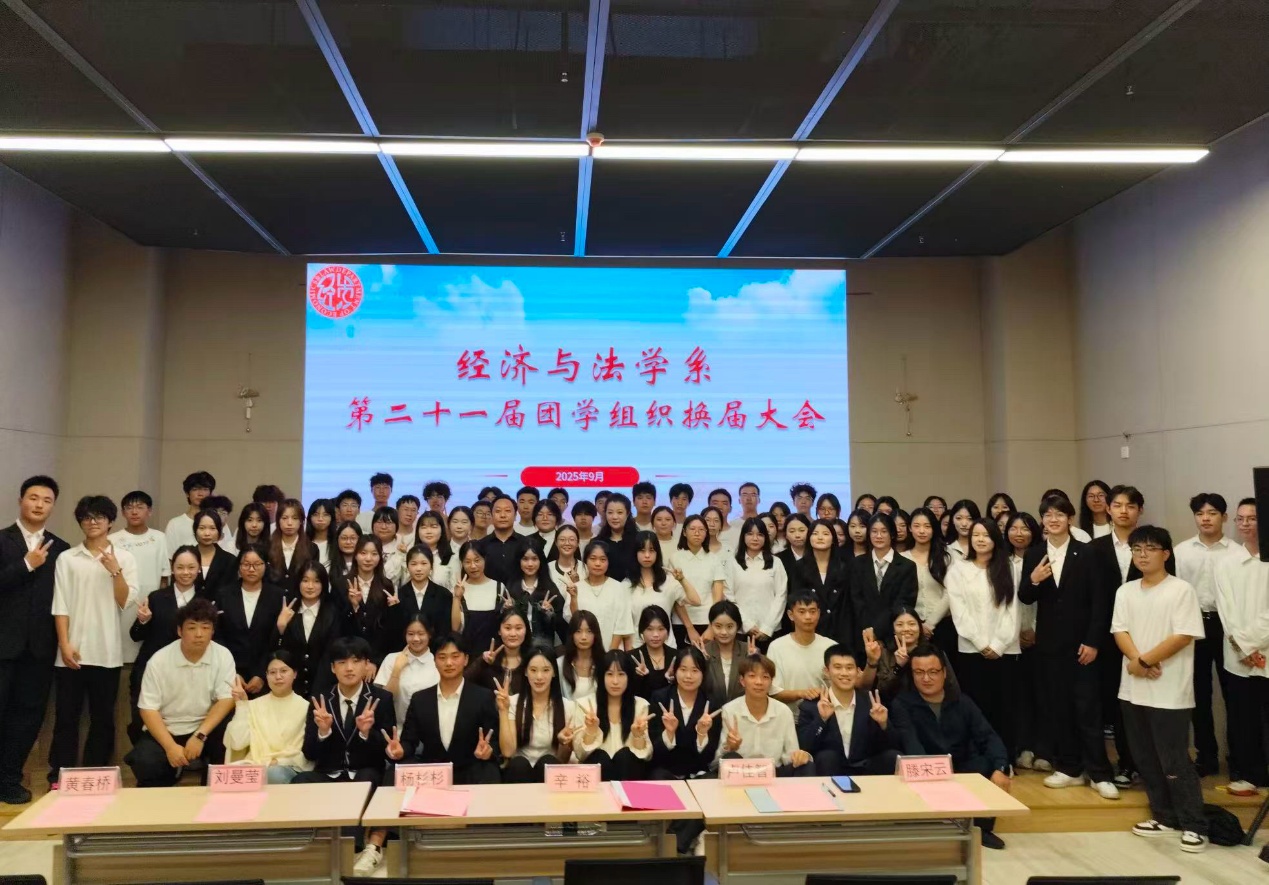 大会在全体参会人员的合影留念中圆满结束。此次换届大会的成功召开,不仅为经济与法学系团学组织注入了新鲜血液,也为我系的发展奠定了坚实基础。