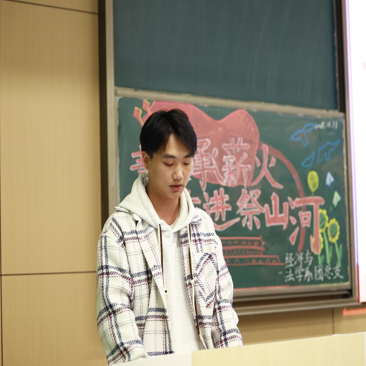 随后,经法系团总支学生兼职副书记骆灿结合时代背景,深入解读了以“爱国情怀、民族气节、英雄气概、必胜信念”为核心的抗战精神的当代价值,激励同学们在新时代征程中续写青春担当。