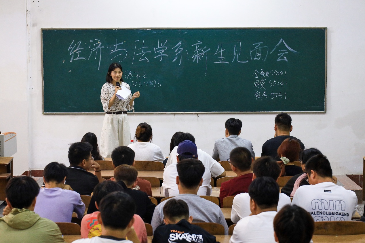 为助力2025级新生快速适应大学生活,构建师生高效沟通桥梁,9月7日下午,经济与法学系于主校区、城中校区同步举行新生见面会。系党总支书记辛裕,常务副主任罗明,副主任周密,党总支副书记杨杉杉亲临指导,全体新生辅导员、班主任及2025级新生共同参与。主校区会议由辅导员卢佳智主持,城中校区由辅导员滕宋云主持,共启新生成长新篇。