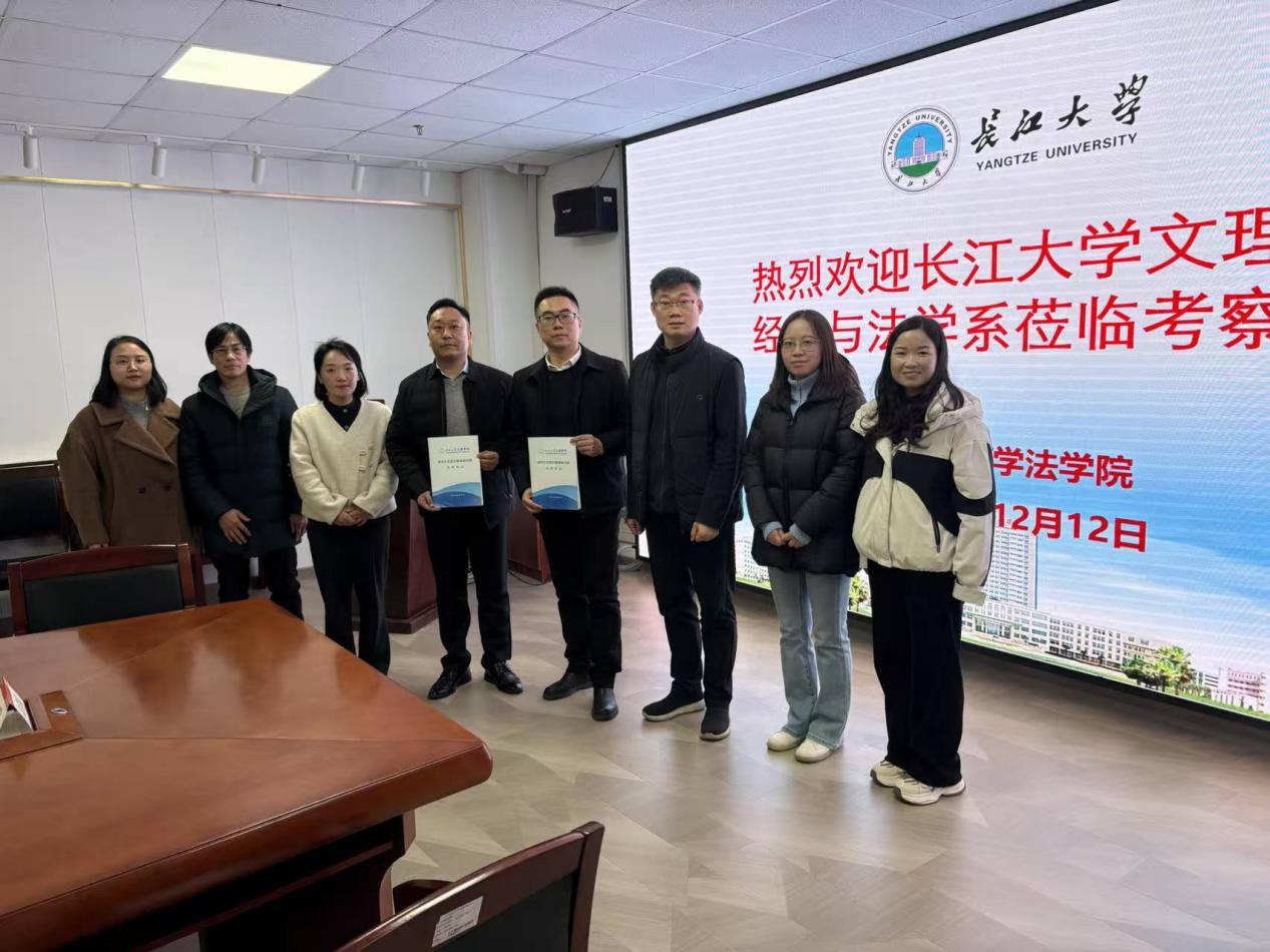 为进一步优化法学专业建设布局、提升人才培养质量与办学水平,12月12日上午,经法系党总支书记辛裕、常务副主任罗明带领4位法学专任教师一行6人,专程赴长江大学法学院开展考察交流。长江大学法学院院长李华成、党委书记张凡、副院长杨春磊等领导热情接待并参与座谈。