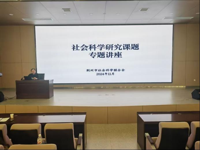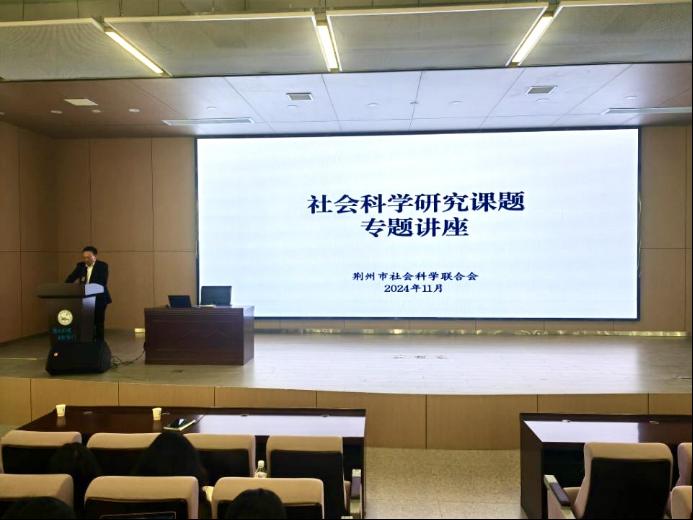 11月7日下午,科技处邀请了荆州市社科联党组成员、副主席瞿青萃来2138acom太阳集团作 “社会科学研究课题”的专题讲座。各院(系)主要负责人及百余名专兼职教师现场聆听。讲座由校领导学院副院长肖寒芝主持