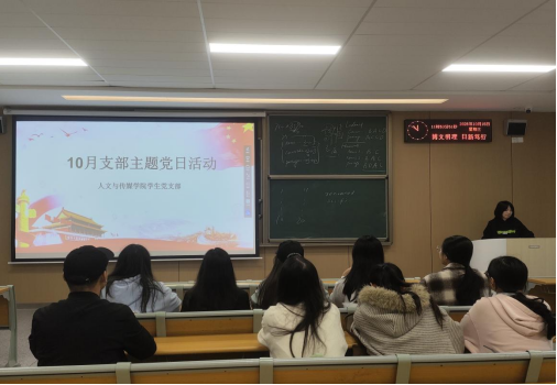 本网讯(通讯员 吴欣怡)10月15日中午,人文与传媒学院学生党支部于C-121开展了10月份的支部主题党日活动。本次会议由杨芯榆同志主持,全体学生党员参加。
