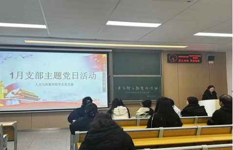 本网讯(通讯员 黄润欣)1月15日晚,人文与传媒学院学生党支部在教学楼C121组织开展2026年1月主题党日活动。本次活动以“深化理论武装,勇担时代使命,奋力开创新年新局”为主题,旨在引导全体党员及时跟进学习党中央最新精神与决策部署,巩固拓展主题教育成果,筑牢思想根基,明确行动方向。支部全体学生党员参加,活动由张婧祺同志主持。