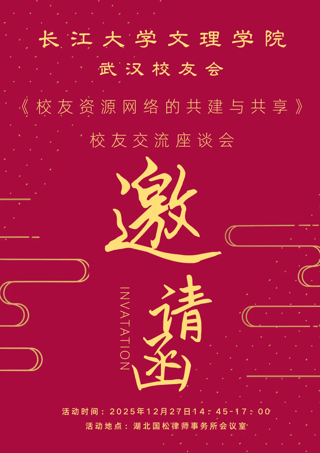 长江奔涌,文理情深。让我们在这个冬日午后相聚,用对话串联起散落的星光,用合作照亮彼此前行的道路。期待与您相见,共同书写校友网络的新篇章!