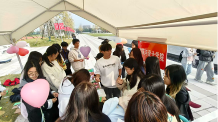 活动现场以色彩明快的帐篷专区为核心,建筑与设计学院的志愿者们打造了集手工疗愈+互动倾诉于一体的体验空间:超轻黏土DIY展台前,同学们捏制出海绵宝宝、蜡笔小新等卡通形象,在指尖创作中释放压力;折纸与心灵留言卡区域,一张张写满期许的便签、一只只精巧的纸船,成为情绪的温柔载体;户外围坐的小组体验中,大家分享创作思路、交换手工作品,在轻松交流中拉近了心的距离。