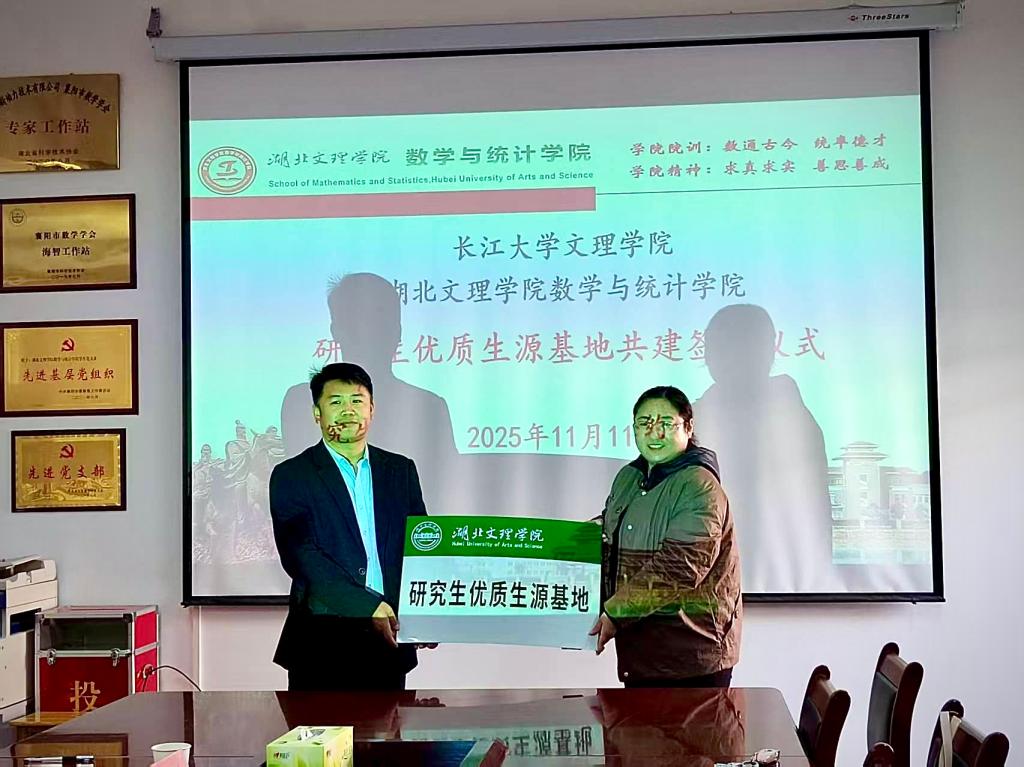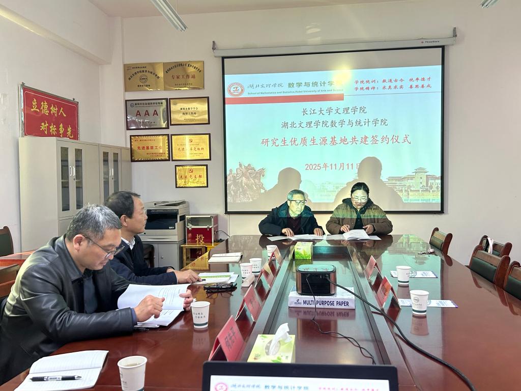 11月11日下午,校领导郭明虎带队,数学与医护系主任何先平、党总支书记左彪赴湖北文理学院数学与统计学院举行交流座谈,并成功签署研究生优质生源基地共建协议。