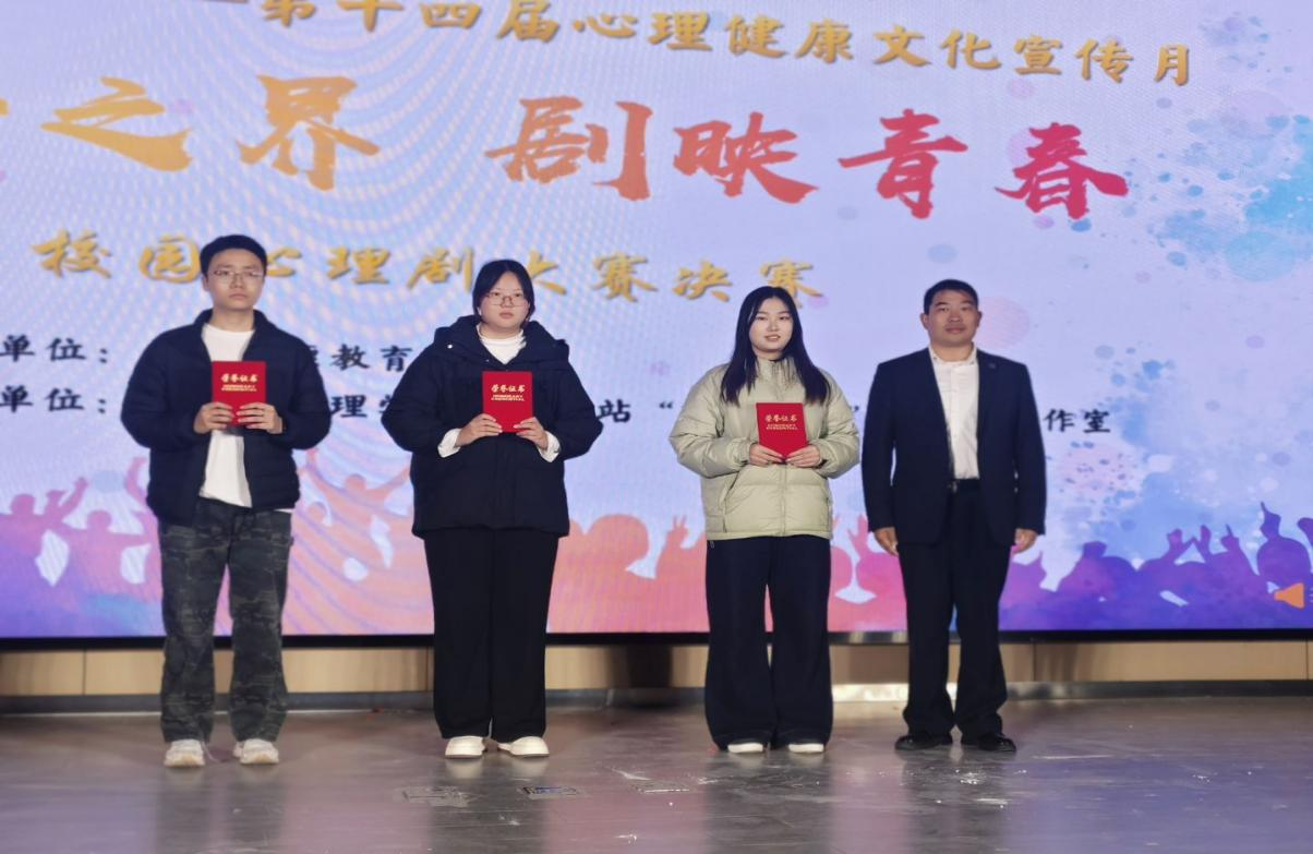 本次参赛作品以“直面内心困惑,重拾成长力量”为核心主题,聚焦当代大学生在学业压力与自我认知中的迷茫与坚守。为呈现最佳效果,我系学子利用课余时间反复打磨剧本、排练细节,从台词斟酌到肢体表达,从灯光配合到情感传递,每一个环节都凝聚着团队的心血。决赛现场,演员们以细腻的表演还原了主角在迷茫中探索、在陪伴中觉醒的成长历程,生动展现了“接纳自我、勇敢前行”的心理内核,引发全场观众的强烈共鸣,接纳不完美的过往,正视内心的脆弱,而后带着这份坦然与勇气奔赴前路,这才是对青春的诠释。