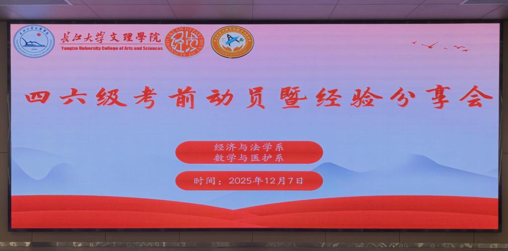 本网讯(见习记者吴紫竹)2025年12月7日19:00数学与医护系和经济与法学系在B-112教室联合举办英语四六级考前动员大会,旨在为备考学子提供专业指导与经验支持。数医系党总支副书记燕梦蝶、优秀学生代表吴红琴和沈世聪以及2024级学生参会。大会由经法系辅导员滕宋云主持。