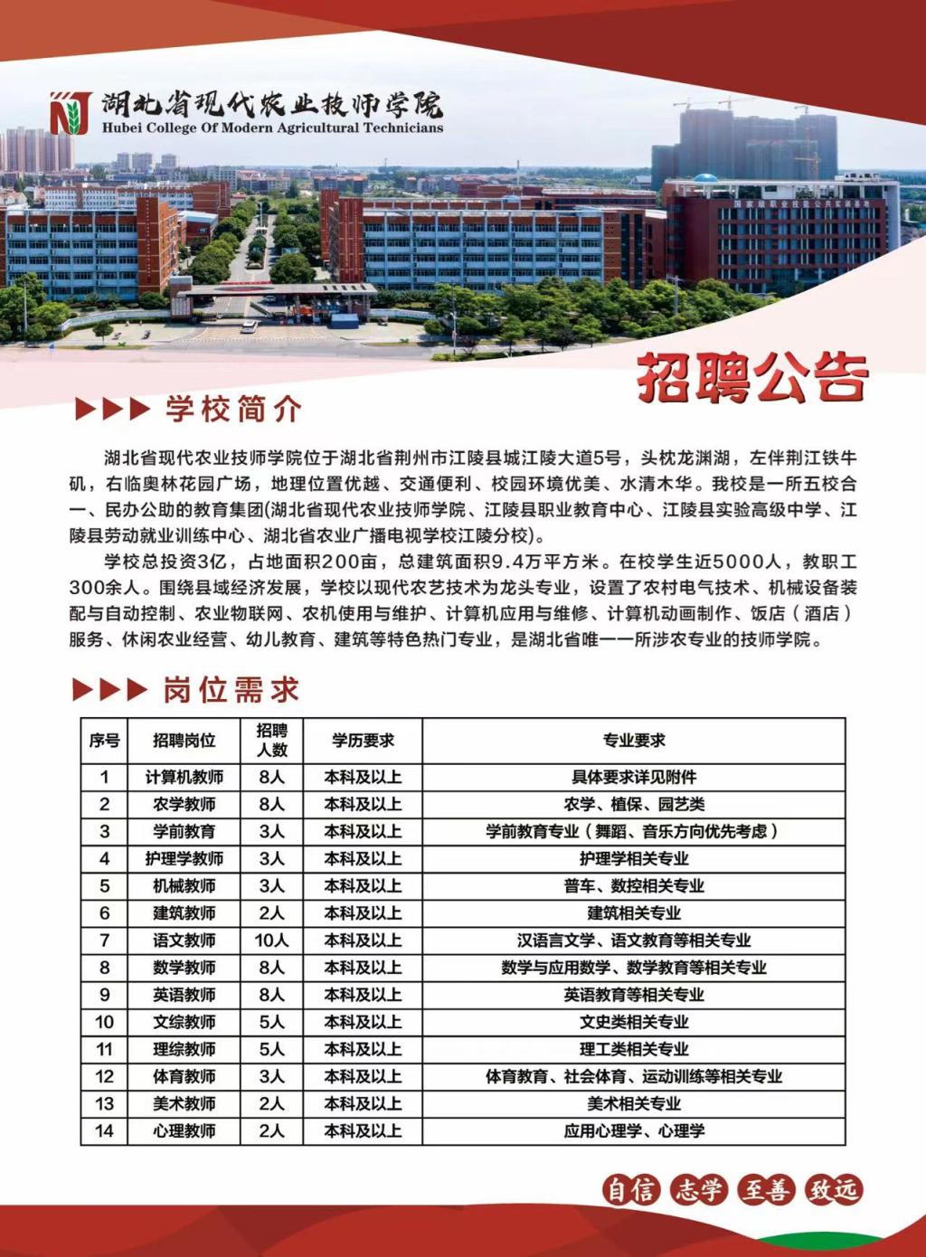 湖北省现代农业技师学院招聘公告