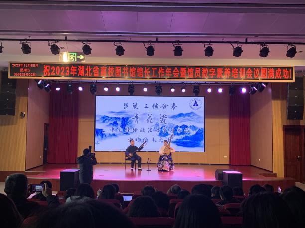最后,进行了湖北省第五届高校图书馆“馆员风采”素养展示优秀作品展演,江汉大学图书馆的独唱作品《假如爱有天意》、武昌首义学院图书馆的阅读推广作品《馆员“说”旗袍》、武汉理工大学图书馆的合唱作品《阅读——跨越时空》、中南财经政法大学图书馆的琵琶三弦合奏《青花瓷》、湖北经济学院图书馆的舞蹈作品《书简舞》,充分展示了图书馆人的风采。