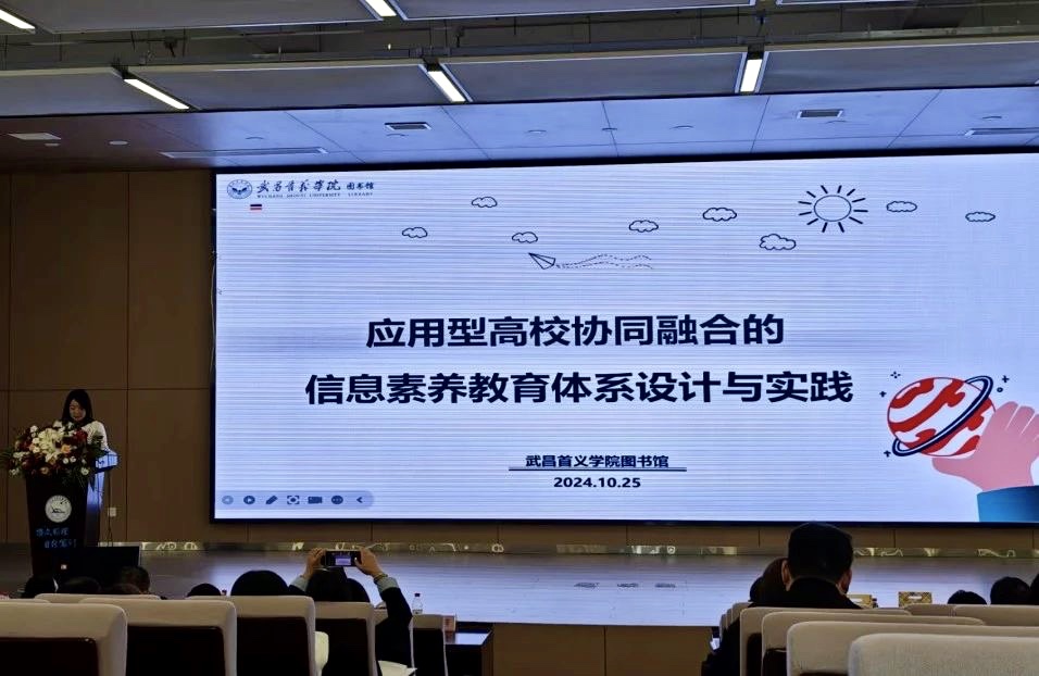 武昌首义学院图书馆副研究馆员杜少霞分享报告《应用型高校协同融合的信息素养教育体系设计与实践》。她以武昌首义学院图书馆为例,介绍了在数智时代背景下,高校图书馆信息素养教育体系的构建思路与心得。