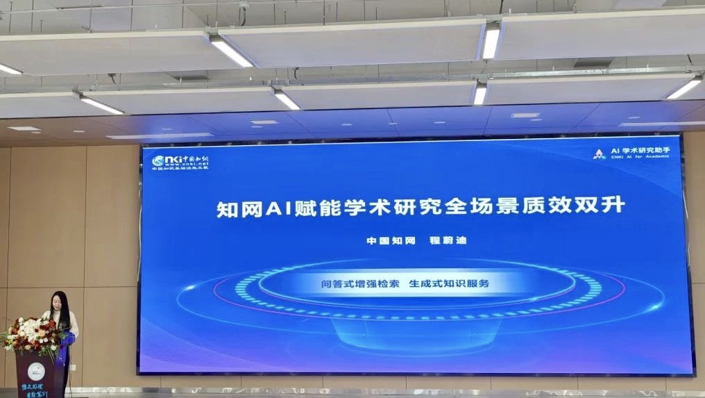 同方知网高级讲师程蔚迪分享主题报告《知网AI赋能学术研究全场景质效双升》。她详细介绍了知网AI通过大模型技术辅助学术研究全过程的应用,强调了知网AI在提高研究资料获取的准确性和全面性、促进文献理解和整合、以及提升论文创作效率方面的作用。