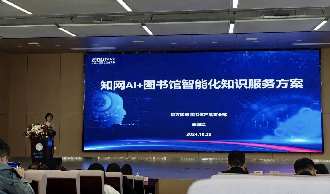 同方知网总库产品总监王国红分享主题报告《知网AI+图书馆智能化知识服务方案》。她展示了知网在提升图书馆服务智能化水平方面的应用,并详细介绍了知网总库AI增强检索、AI辅助阅读、创作、统计大数据等功能。