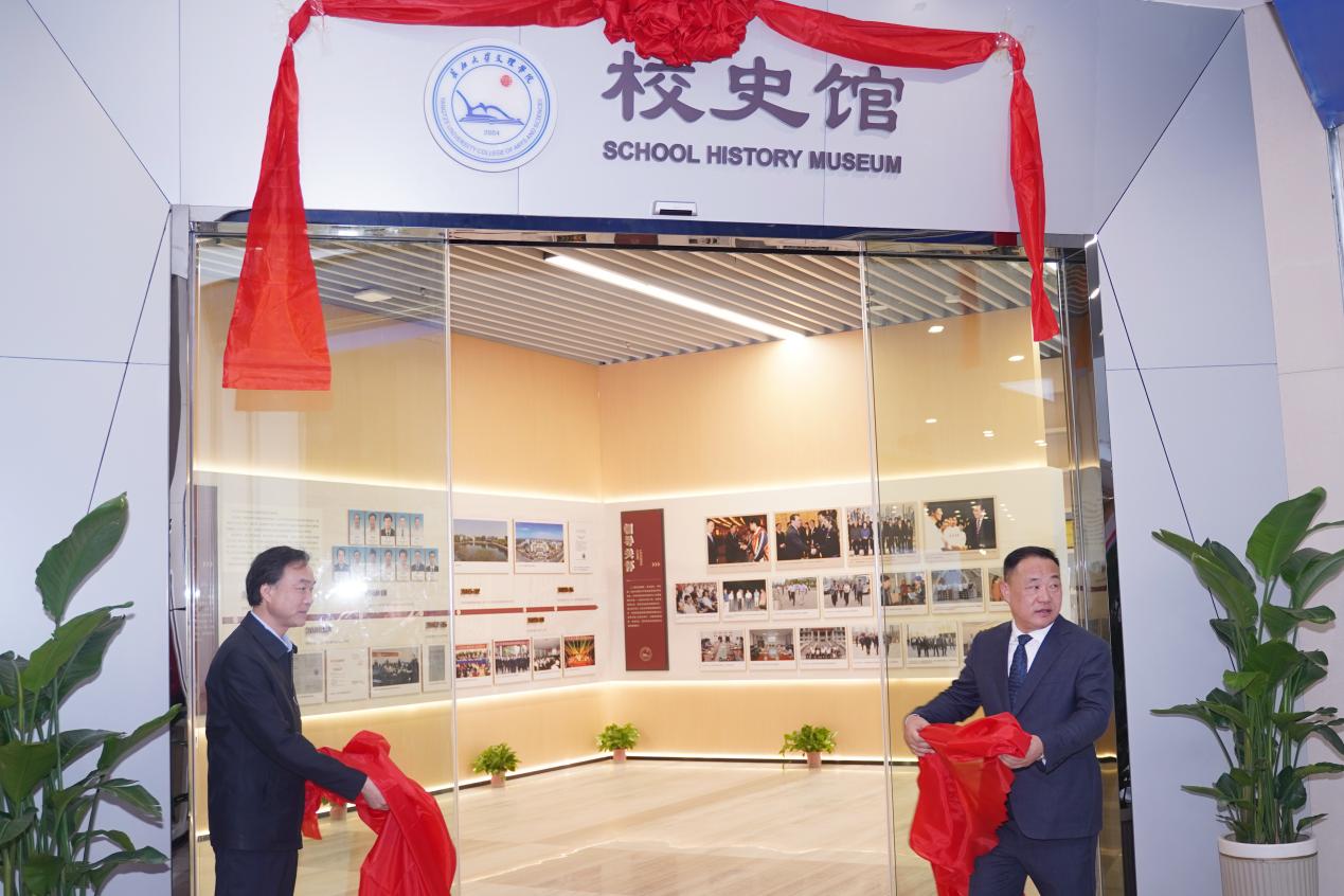 在现场人员的热烈掌声中,校领导院长李兴祥、湖北银行荆州分行党委书记、行长鲁平共同为校史馆揭幕。