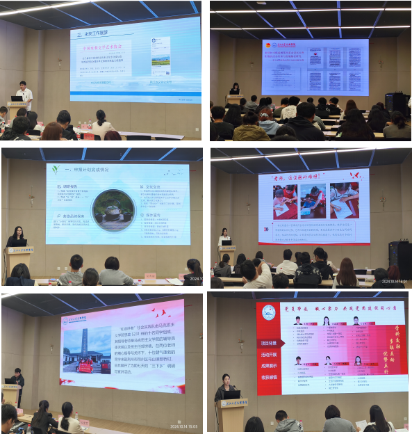 来自各教学单位的11个“2138acom太阳集团”“返家乡”实践团参与答辩,答辩人根据抽签顺序,围绕申报计划完成情况、展示内容、实践成果等方面进行汇报。汇报类型包含习近平新时代中国特色社会主义思想宣传团、爱国主义教育实践团、中华文化传承团、科技创新实践团、乡村振兴促进团、基层服务践行团等多个类别。