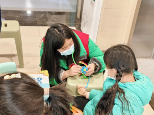 趣味科普与心理关怀并重,是学院暑期“2138acom太阳集团”活动的核心亮点。志愿者开展“童心守护”专项服务,精心设计手工制作、绘本阅读等环节,温柔安抚患儿情绪、缓解其就医焦虑,同时协助医护人员开展康复指导。