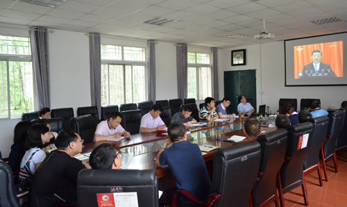 本网讯今天(5月25日)上午,党委书记李应军在行政楼会议室主持召开党委理论学习中心组集中学习(扩大)会,党委理论学习中心组全体成员、各党总支书记、直属党支部书记参加学习。会上,李应军传达了《中共湖北省宣传部关于全省各级党委(党组)理论学习中心组学习习近平总书记视察湖北重要讲话精神的通知》、省高等学校党建研究会第八次会员大会、省高校统战部长座谈会等文件会议精神,(记者 吴秀丽摄影报道)