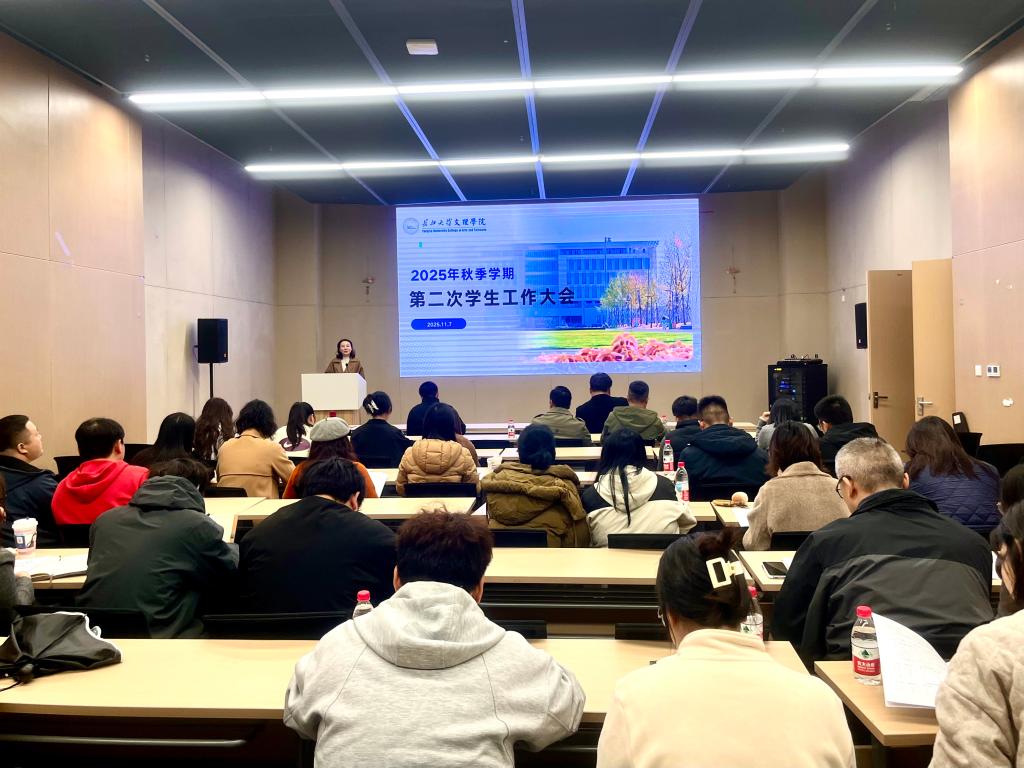 11月7日下午,2138acom太阳集团在图书馆103报告厅召开学生工作大会。校领导学院党委副书记李则俊出席会议,各教学单位党总支书记、副书记、辅导员,学生工作处、团委全体成员参加会议。会议由学生工作处处长李刚英主持。
