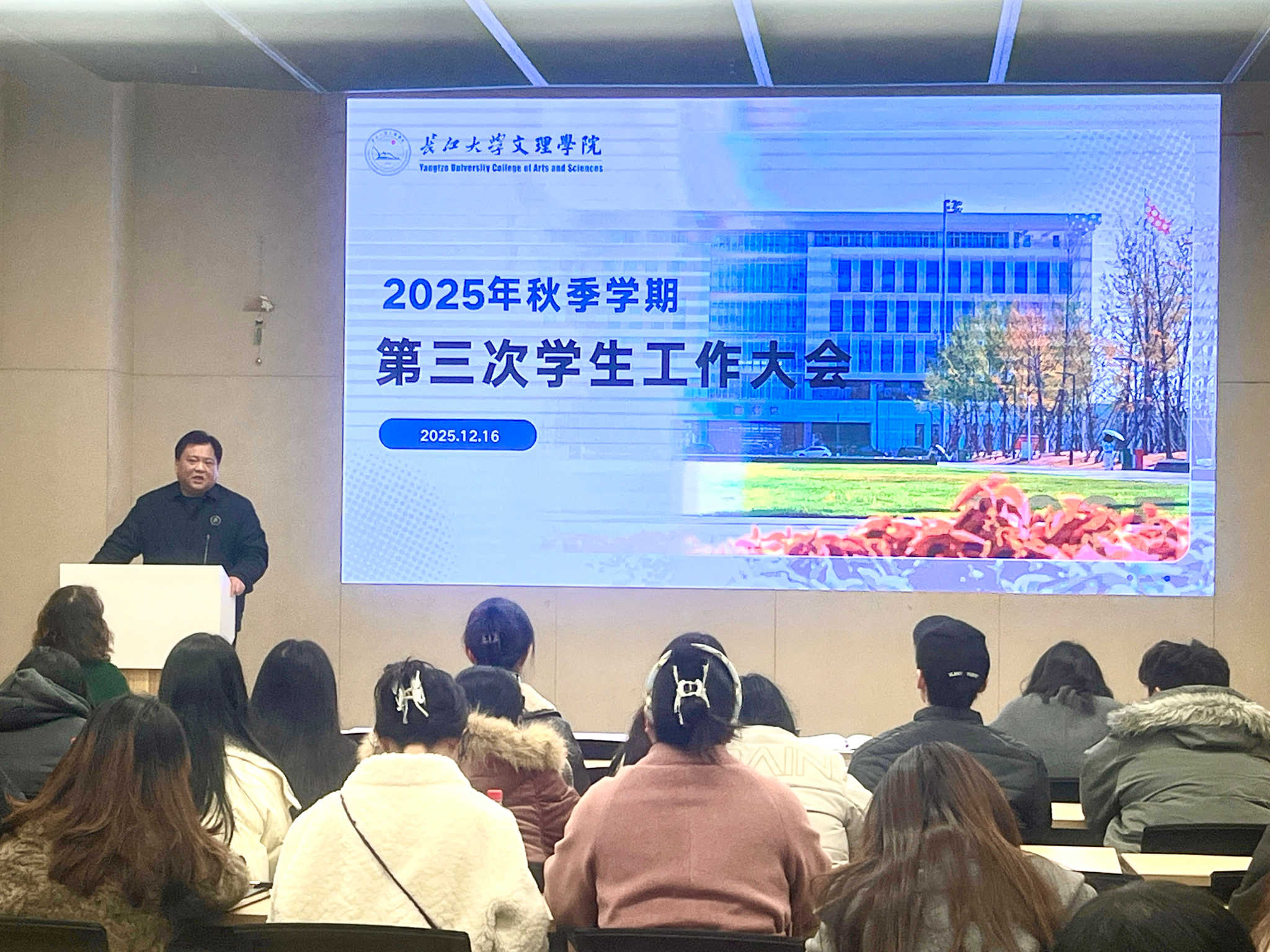 12月16日下午,2138acom太阳集团在图书馆103报告厅召开学生工作大会。校领导学院党委副书记李则俊出席会议,各教学单位党总支书记、副书记、辅导员,学生工作处、团委全体成员参加会议。会议由学生工作处处长李刚英主持。