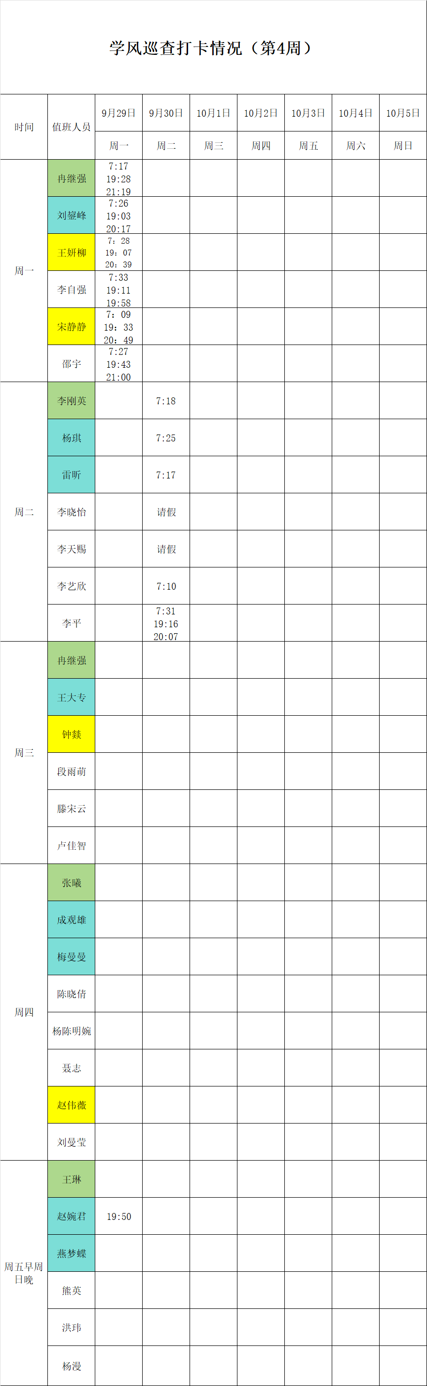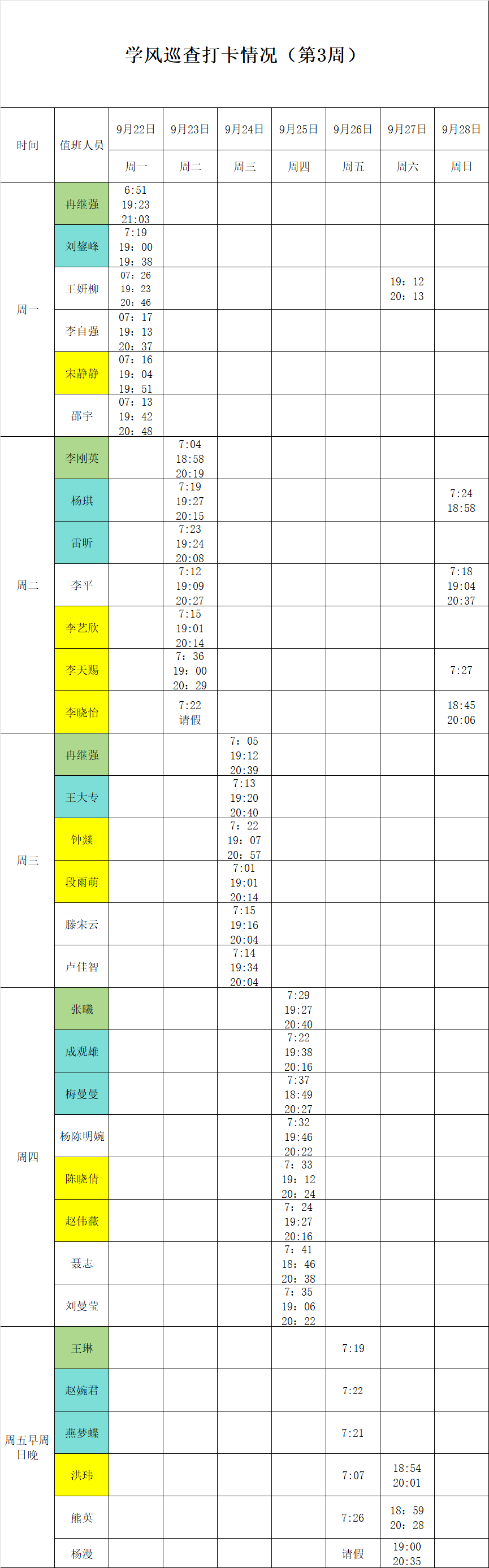 2025-2026学年第一学期第3-4周学风巡查打卡情况公示