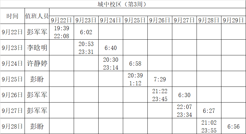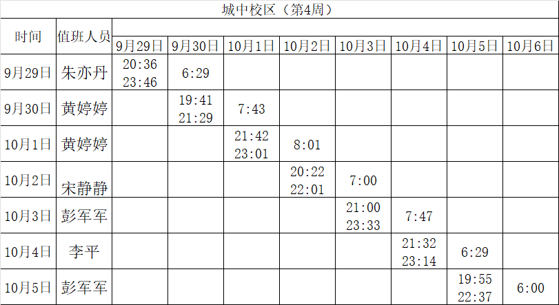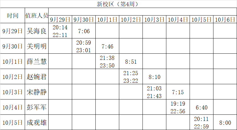 2025-2026学年第一学期第3-4周学工人员寝室值班通报