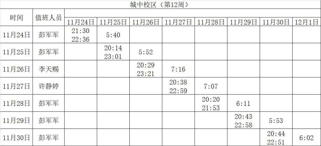 2025-2026学年第一学期第11-12周学工人员寝室值班通报