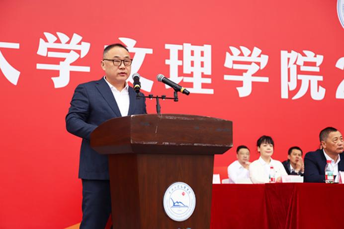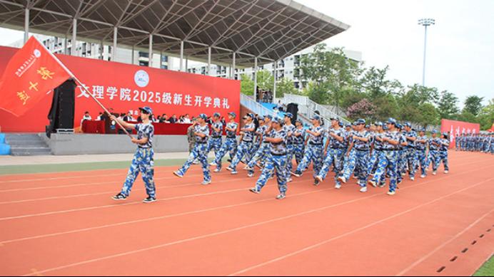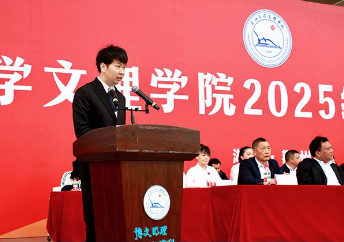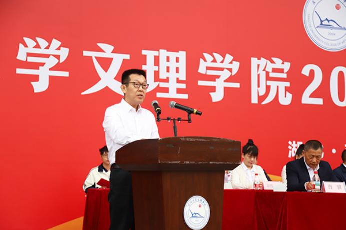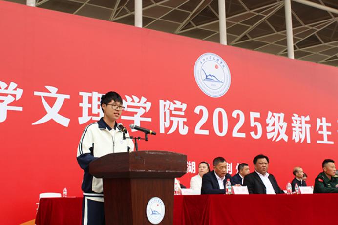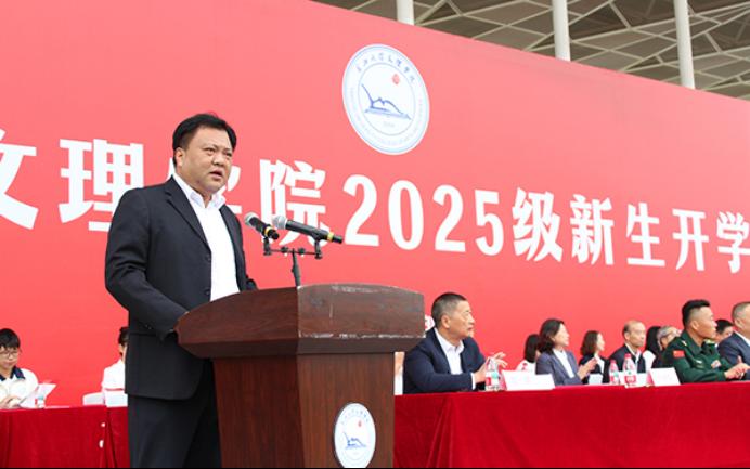 “二十一年来,学校始终坚守‘为党育人、为国育才’的初心使命,秉持‘应用型、区域性、国际化’的发展路径,为社会培养了三万余名高素质应用型人才。近年来,学校更全面推进‘两康一训’育人模式,聚焦身心健康与就业能力,构建‘五育并举’新格局。”李兴祥院长指出,站在大学起点,立于时代潮头,同学们生逢其时,使命在肩,并倾心分享三点期望与大家共勉:一是以家国情怀铸魂,做有使命感的文理人,让个人理想与国家发展同频共振,铭记历史,继往开来,以文理人特有的精神气质投身强国建设。二是以身心健康筑基,做充满活力的文理人,以健康的体魄和阳光的心态,面对学习和生活,行走未来,搏击风浪。三是以责任担当砺行,做有行动力的文理人,以学习为本、夯实专业根基,以挑战为机、竞逐创新舞台,以实践为路、深入社会课堂。