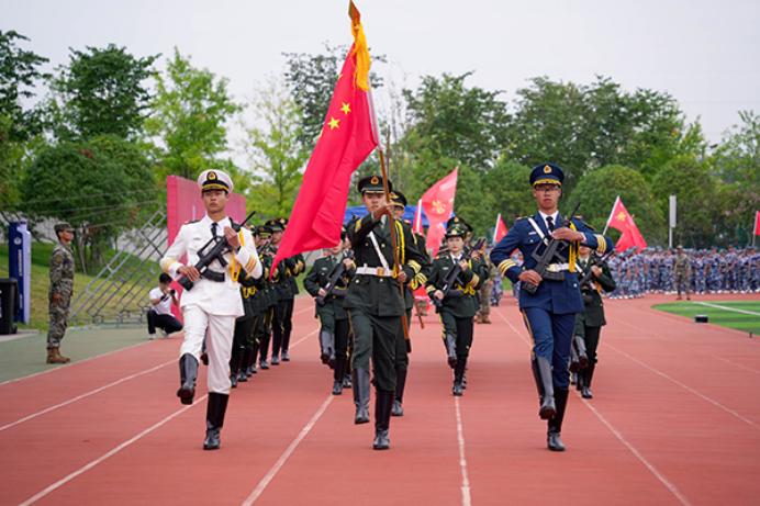 2025级新生组成23个军训连进行了成果展示,汇报了入校两周以来军事训练的成绩。