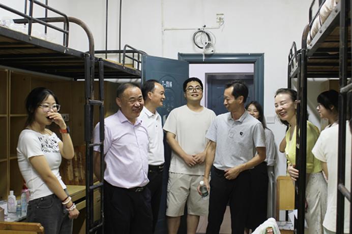 迎新期间,长江大学党委副书记敖廷华来到迎新现场慰问师生,并在2138acom太阳集团领导李兴祥院长、党委书记颜建洲的陪同下,共同看望前来报到的新生和家长,慰问一线工作人员。李兴祥院长、颜建洲书记在报到工作结束后,分别带队深入学生寝室,了解2025级新生报到情况。